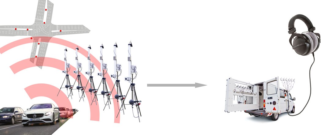 Operational basis for the project is a Mercedes-Benz Sprinter that countains the URBAN AUDIO instruments and an 8-track recording studio including mixer, A/D-interface and wireless transmission systems. The van further contains headphones and chairs for visitors, camera-equipment and all kinds of safety gear.